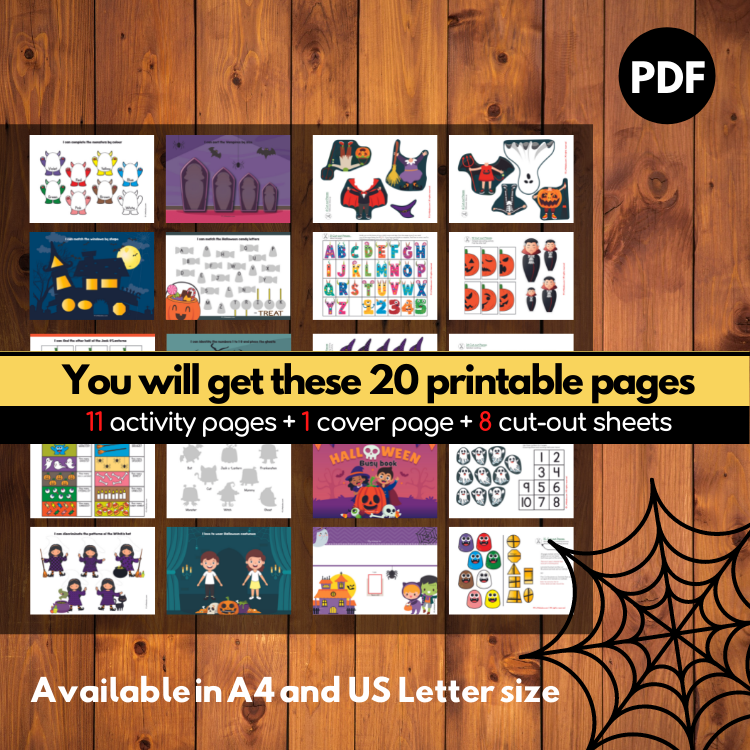 Halloween Busy book Printable to create Fun and Learning Activities for Toddlers/ preschoolers.
